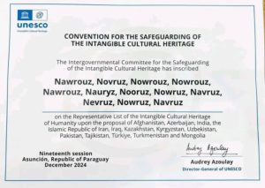 Монгол Улс “Наурыз” баярын өвийг дэлхийн 12 улсын хамтаар ЮНЕСКО-гийн Хүн төрөлхтний соёлын биет бус өвийн жагсаалтад 2024 онд амжилттай бүртгүүлж, ийнхүү манай улсын 17 дахь өв болж бүртгэгдсэн юм.
